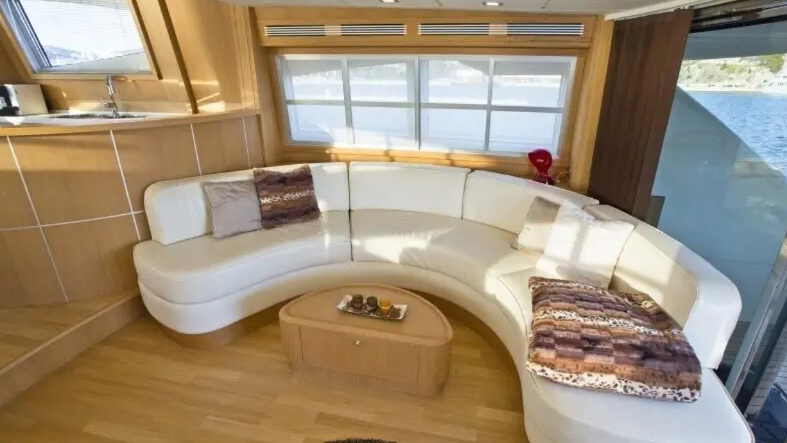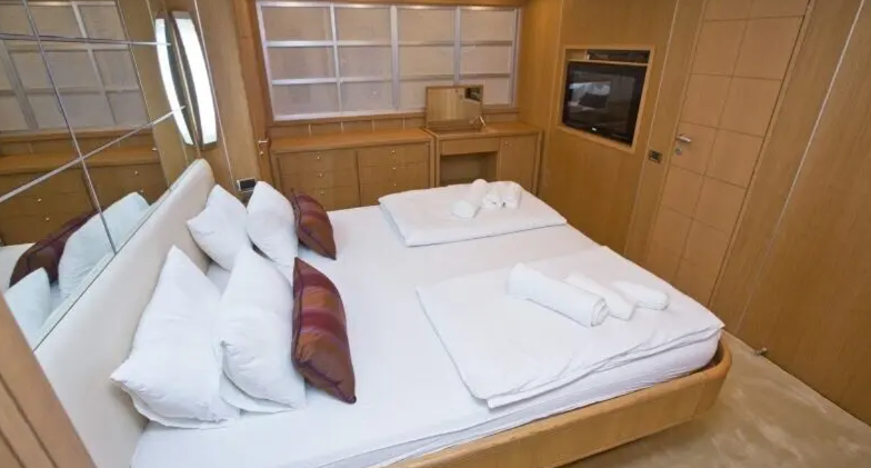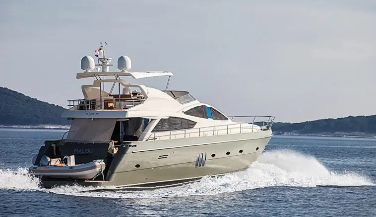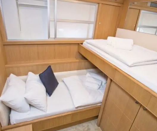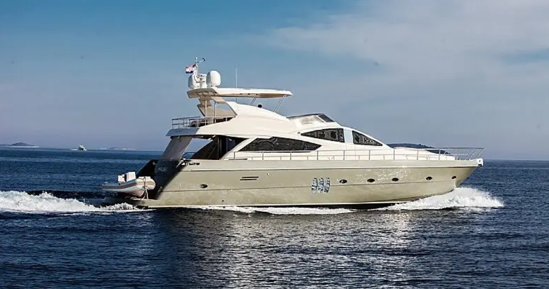 Motor yacht Abacus 70 is located in Croatia. It is powered by two MAN V12-1360 engines with a total power of 2 × 1360 hp. The interior of the yacht Four cabins – master, VIP and two double guest cabins – provide comfortable accommodation for eight guests. Abacus 70 has been regularly maintained and upgraded: 2022. complete renovation of the interior and exterior, floors and foils; 2023. modernization of the salon, new TV, furniture and control system and engine and generator service; 2024. new bedding and hydraulic service. The boat is dry docked every year, ensuring long-term reliability and top condition. If you would like more information about this vessel, please contact us by phone or email.