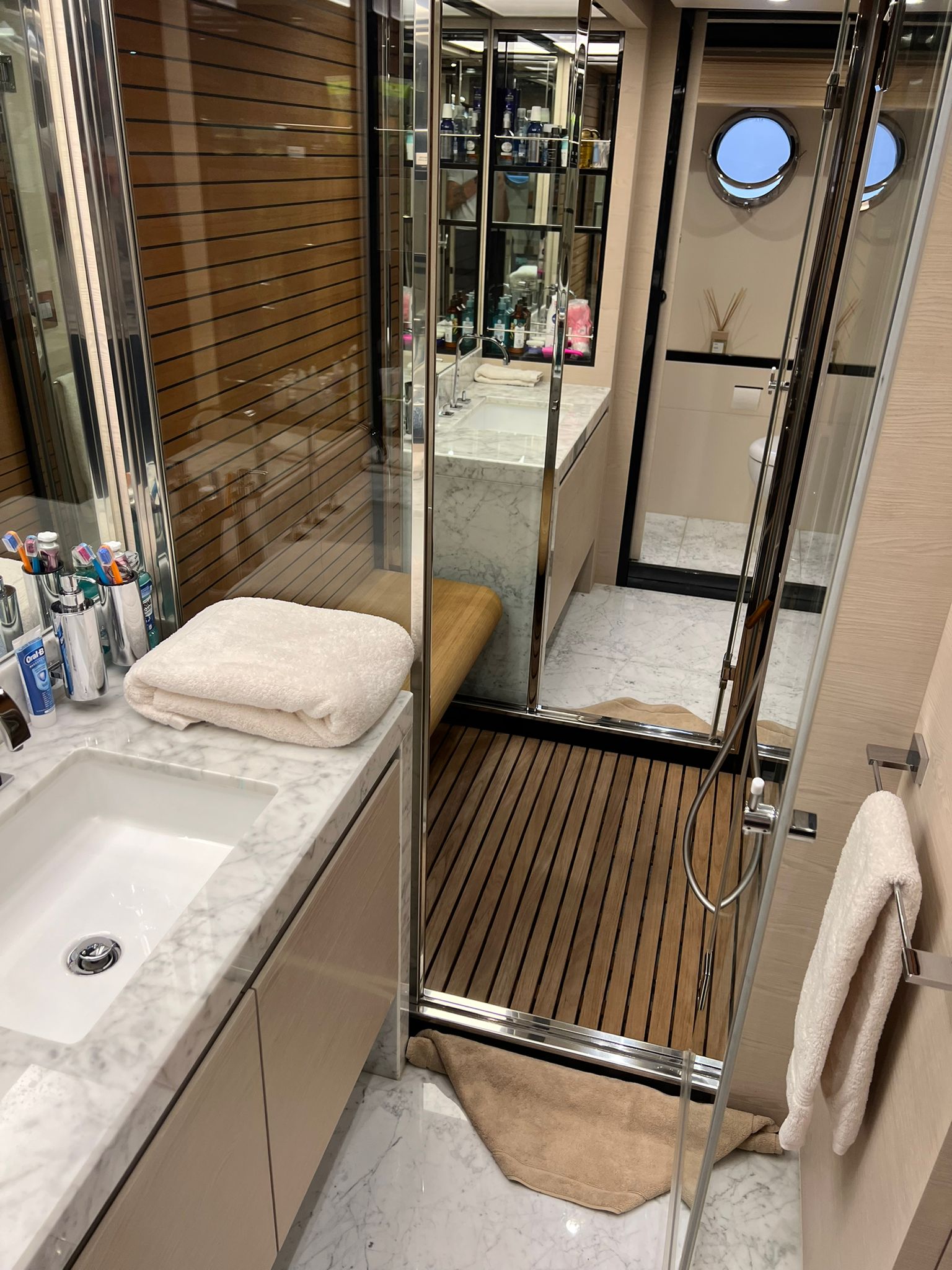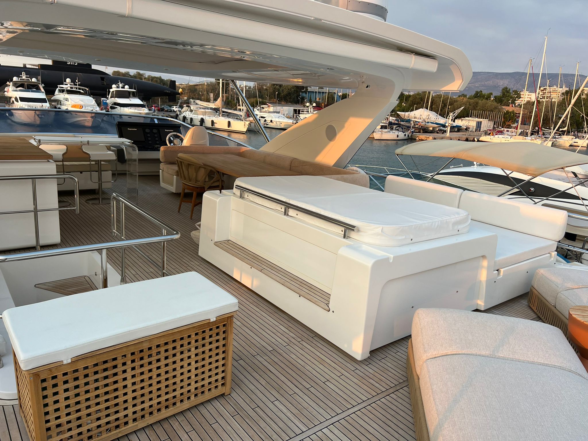Azimut 80 Flybridge from 2015, located in Montenegro. It is powered by two powerful MAN CR V12 engines with a total power of 2648 kW with a total of 1380 engine hours. The interior offers a top level of comfort for up to 10 guests, accommodated in four spacious cabins, each with its own bathroom, five heads for guests. The crew has two cabins for three members, which ensures professional service and privacy of guests throughout the trip. Whether you are planning private cruises, charter or a luxurious vacation with the family, this yacht is ready to meet all your expectations. Equipped with tender Williams 395, 2 Kohler generators, 20kw and 28kw, CMC stabilizators , 2 x water maker, Jacuzzi on fly, 2 x BBQ, 2 x ice maker, 2 x outdoor fridge, etc. For more information about this yacht, please contact us by phone or email.