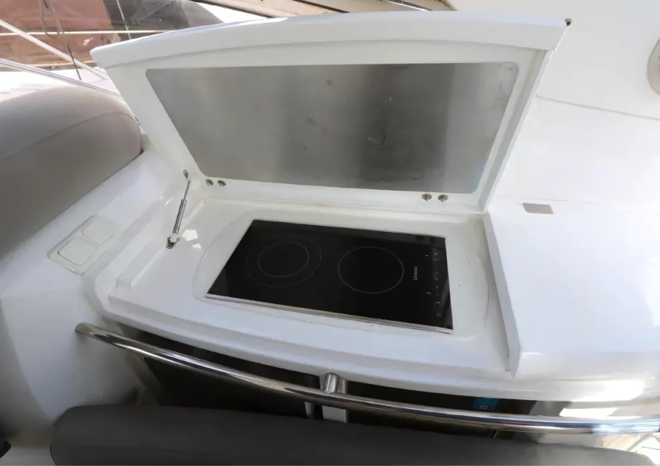 The Sunseeker Portofino 47 was designed for comfort and speed, with all of the luxuries to make life onboard easy and enjoyable. A great boat for family fun or entertaining with friends owing to a spacious cockpit and well-designed interior that can comfortably accommodate 12 people for day trips, or sleep up to six adults for that weekend away. Total power: 944hp. An excellently designed sea going boat, the ride is smooth and thanks to a hull that combines wide down-turned chines, sharp bow entry and a prominent keel to create a cushion of air for the hull to ride on. When at anchor, the bathing platform makes water sports easy and allows for simple launching and recovery of the tender. Recently, the engine was serviced, a new exhaust was installed on the left engine. This year polishing and antifouling was done.